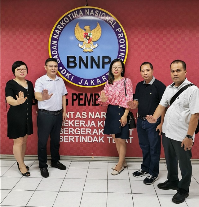 在印度尼西亞期間,我公司代表團和由國家禁毒委員會(huì )副秘書(shū)長(cháng)、中國禁毒基金會(huì )秘書(shū)長(cháng)李憲輝率領(lǐng)的國家禁毒委代表團一起參觀(guān)了印度尼西亞麗都國家禁毒中心所屬的禁毒培訓中心、國家毒品實(shí)驗室和禁毒康復中心,了解了印度尼西亞毒品預防教育、禁毒培訓、毒品濫用監測、和戒毒康復等工作情況。同時(shí)應客戶(hù)邀請下,國家禁毒委同我公司貿易團隊一起參觀(guān)了客戶(hù)公司,了解毒檢產(chǎn)品在印尼市場(chǎng)的銷(xiāo)售情況。