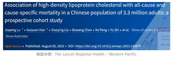 近期發(fā)表于The Lancet Regional Health – Western Pacific的一項研究,旨在全面評估中國人群中HDL-C與全因死亡率和病因特異性死亡率的關(guān)系,并評估高HDL-C對比低HDL-C的死亡率,從而為人群層面的HDL-C管理策略提供新的知識和深入的見(jiàn)解。