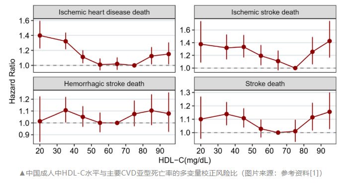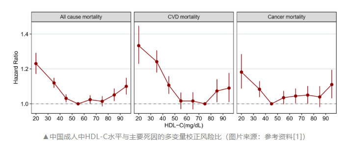 結果顯示,低HDL-C和高HDL-C均與死亡風(fēng)險增加相關(guān)。該研究推薦50 mg/dL~79 mg/dL作為中國成人HDL-C的最佳范圍。正確管理低HDL-C和高HDL-C,可給血脂異?;颊邘?lái)獲益。論文指出:“該研究是第一個(gè)在近340萬(wàn)中國成人中全面評估HDL-C與全因死亡率和病因特異性死亡率之間關(guān)系的研究”。